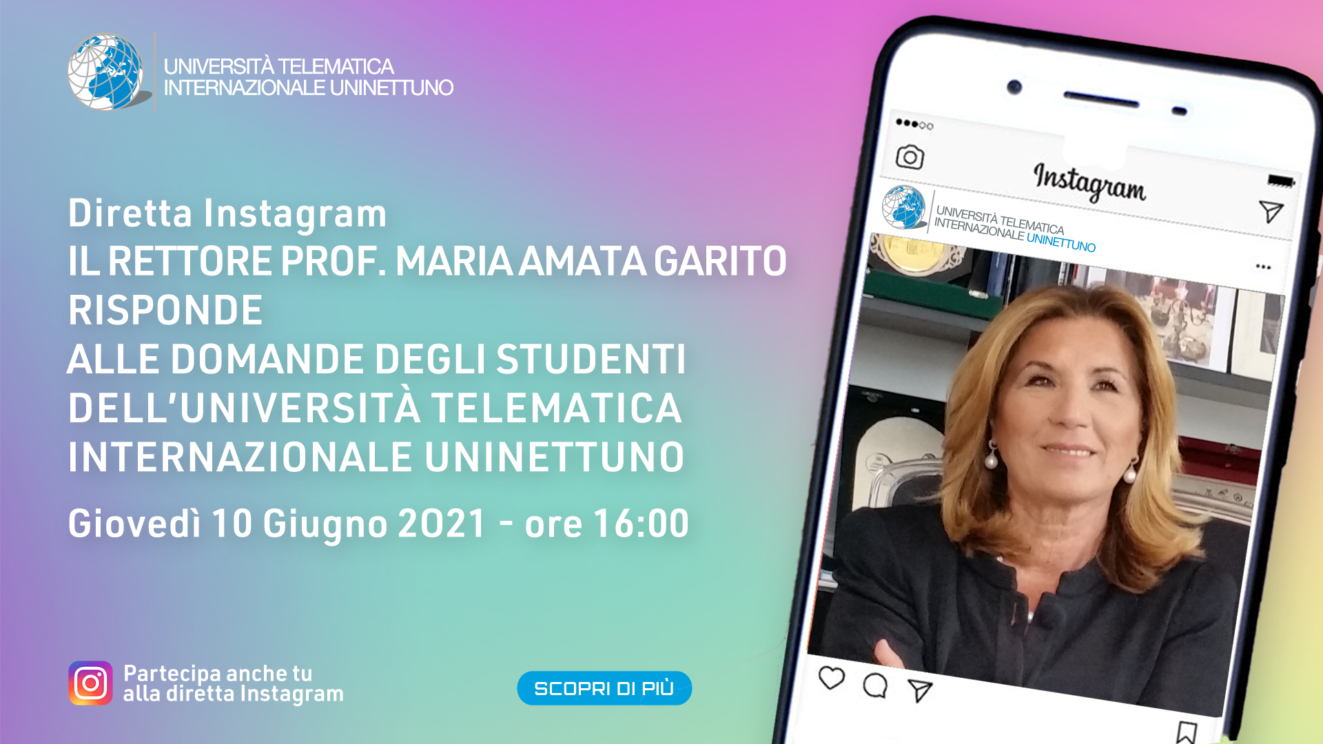 Giovedì 10 giugno alle ore 16:00 si tiene in DIRETTA sulla pagina Instagram di UNINETTUNO, il primo appuntamento InstaLive “Il Rettore Prof. Maria Amata Garito risponde alle domande degli studenti dell’Università Telematica Internazionale UNINETTUNO"