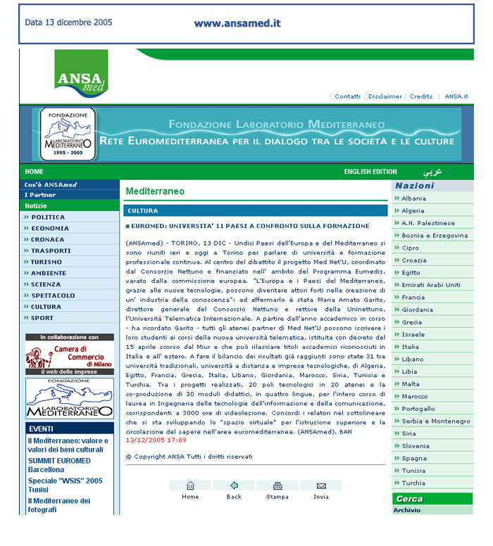 Εκδότης:  AnsaMed  Ημερομηνία13/12/2005