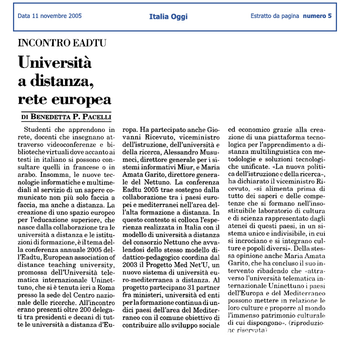 Εκδότης:  Italia Oggi  Ημερομηνία11/11/2005