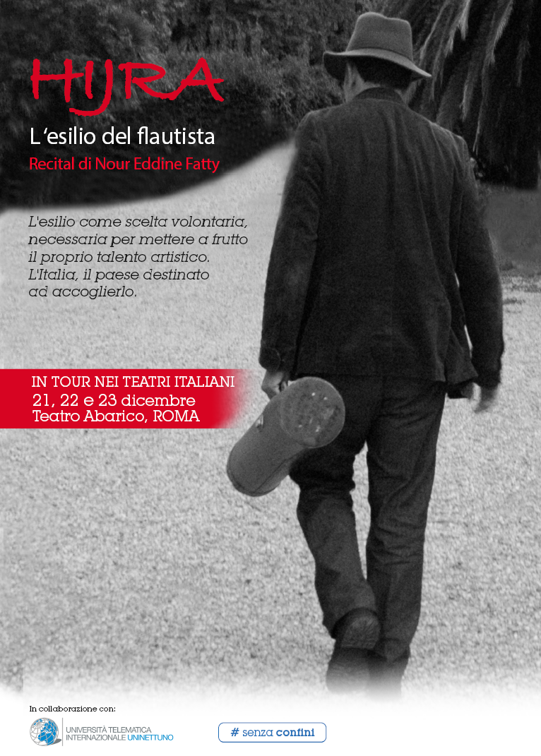 Il 19 dicembre, alle ore 12.00, l'Università Telematica Internazionale UNINETTUNO ospita la conferenza stampa di presentazione del recital "Hijra - L'esilio del flautista", dell'artista marocchino Nour Eddine Fatty, musicista di origine berbera, direttore artistico della UNINETTUNO World Orchestra e oggi uno dei riferimenti più significativi della musica nordafricana in Italia.