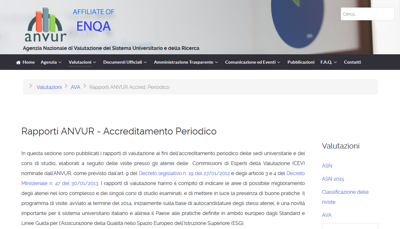Cliquez ici pour voir les évaluation de l’ ANVUR.