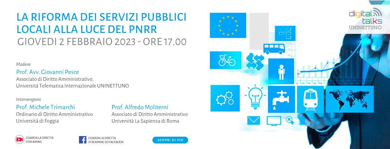 Giovedì 2 febbraio alle ore 17 l'Università Telematica Internazionale Uninettuno presenta l'evento Digital Talk "La riforma dei servizi pubblici locali alla luce del Pnrr".