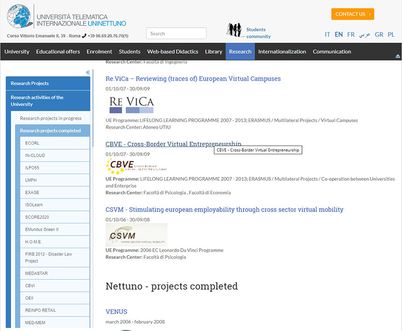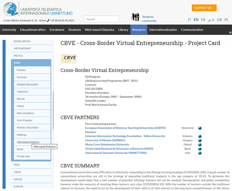 Seleziona il collegamento CBVE - Cross-Border Virtual Entrepreneurship