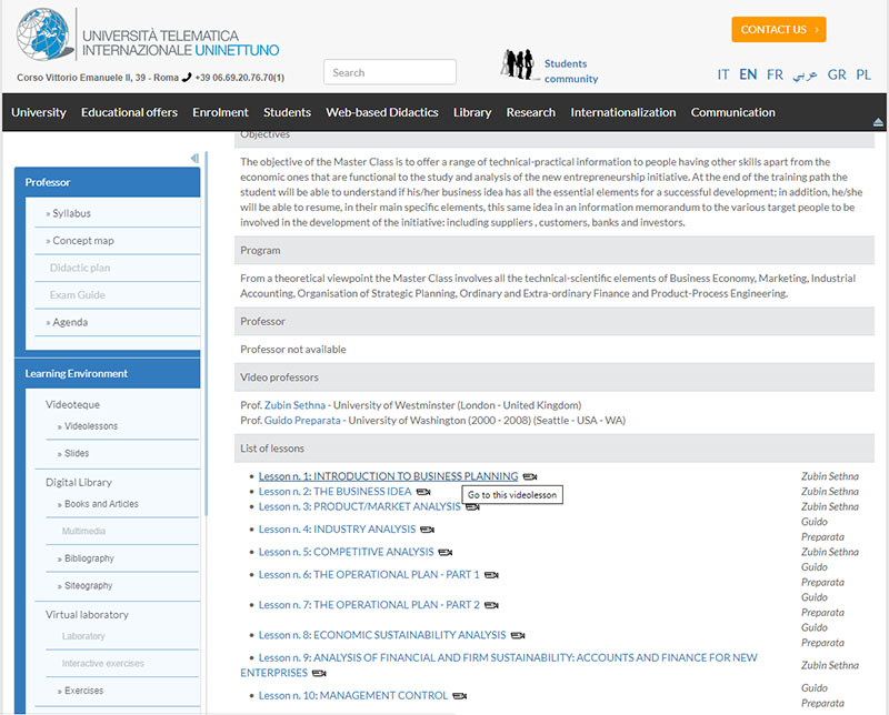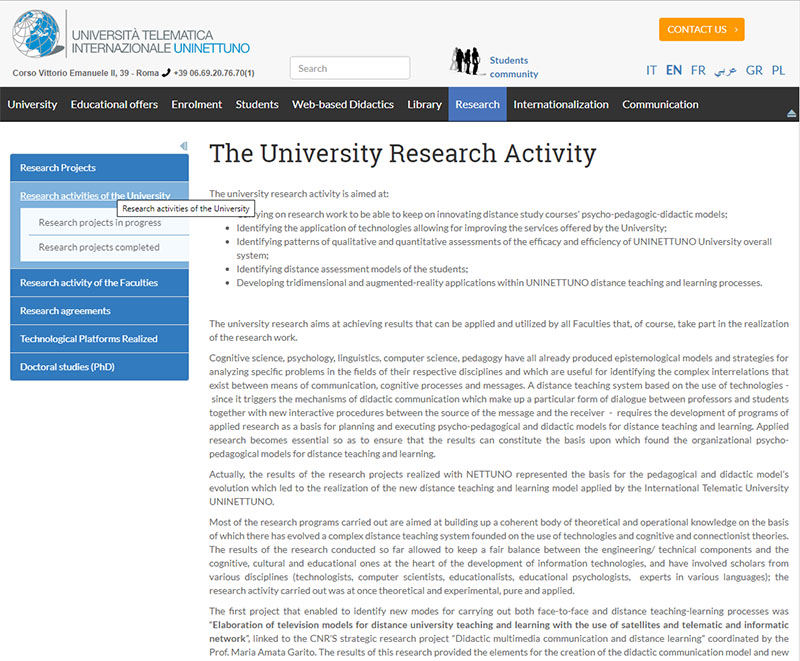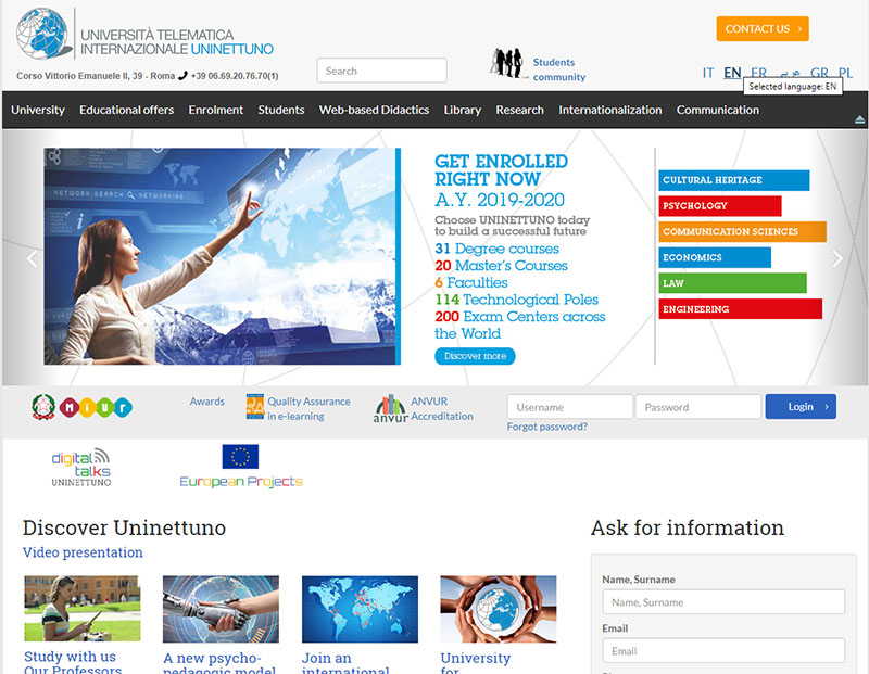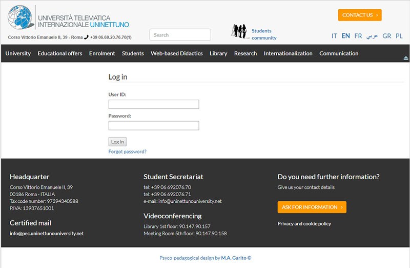 Accesso al sito Web: https://www.uninettunouniversity.net
