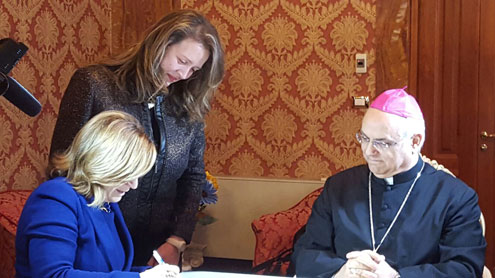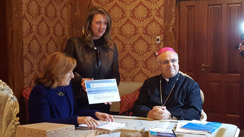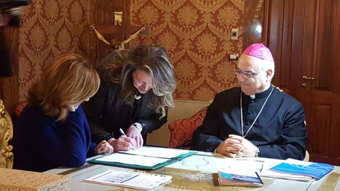 Alla presenza di S.E. Mons. Vincenzo Bertolone - arcivescovo metropolita di Catanzaro-Squillace, nonché presidente della Conferenza Episcopale Calabra - hanno firmato l’accordo il Rettore dell’Uninettuno, la prof.ssa Maria Amata Garito e il presidente dell’Area Assistenza Agenzia per Stranieri Catanzaro, Antonella Comes.