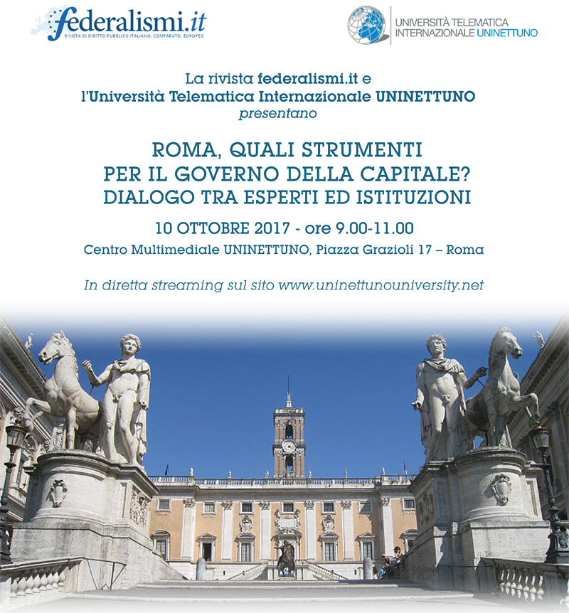 Cosa serve per gestire al meglio Roma Capitale? A queste e a tante altre domande si darà una risposta durante il convegno "Roma, quali strumenti per il governo della Capitale. Dialogo tra esperti e istituzioni", organizzato dall'Università Telematica Internazionale UNINETTUNO, in collaborazione con la rivista Federalismi.it.