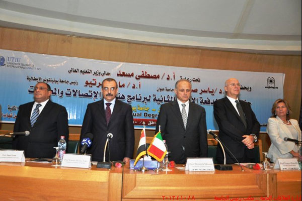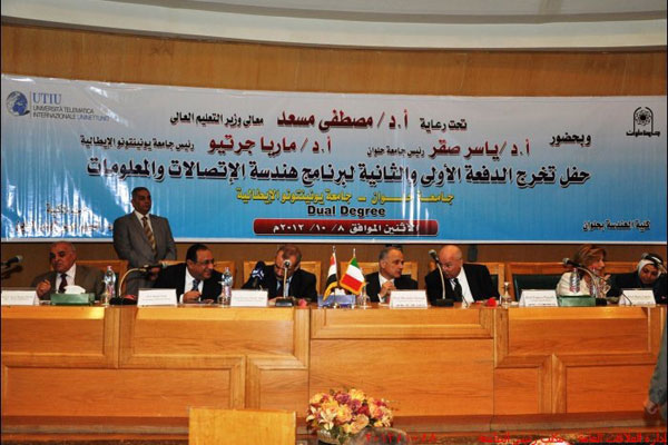 Consegna dei diplomi di laurea ai primi 50 ingegneri che, grazie a un accordo tra i rispettivi ministeri, avrà validità in Italia, in Europa e in Egitto. Questi 50 ingegneri egiziani si sono infatti formati in virtù della collaborazione tra la Helwan University del Cairo e l’italiana Uninettuno. L’insegnamento è avvenuto in arabo e a distanza tramite internet e la tv, in virtù di un accordo tra Uninettuno e il governo egiziano.