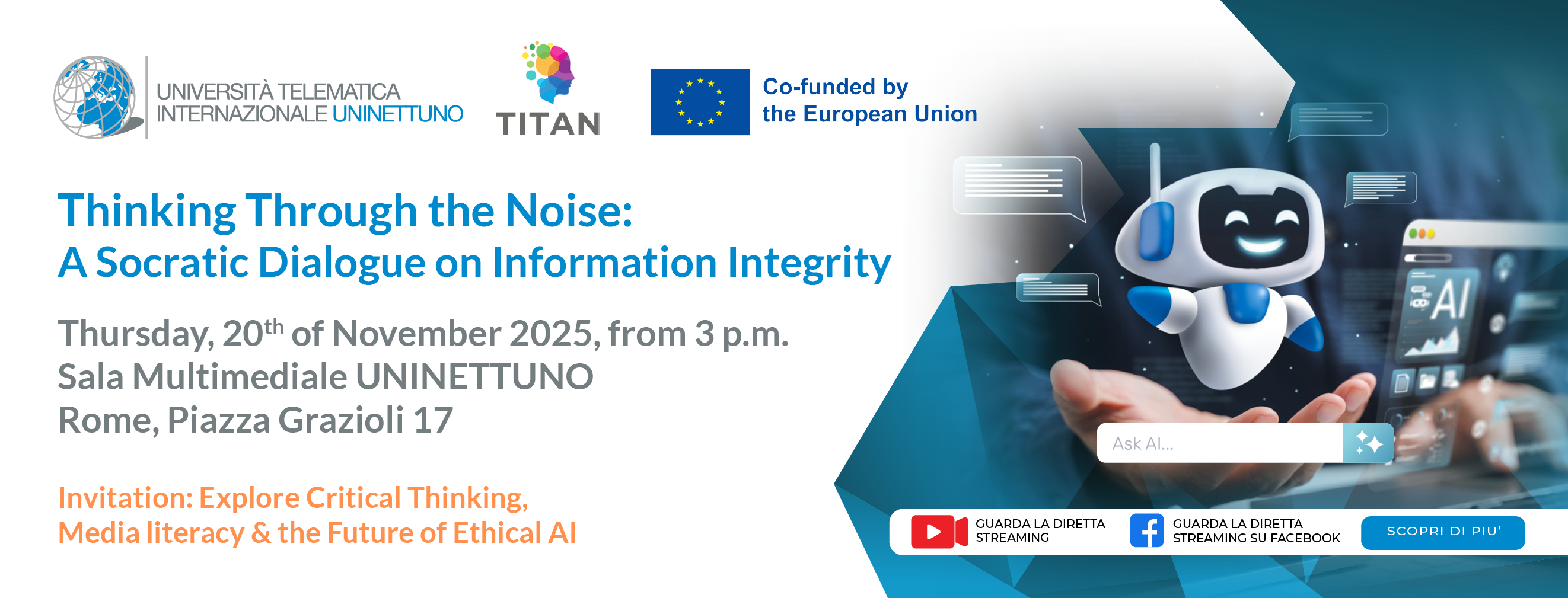 A highlight of the event is the award presentation for Critically Yours, TITAN’s international design challenge endorsed by Sapienza University of Rome and the Cumulus Association. The competition invited students, graduates, and creative teams from around the world to design interactive experiences and short videos that make media literacy and critical thinking accessible to all. The winning projects will be presented live during the session.