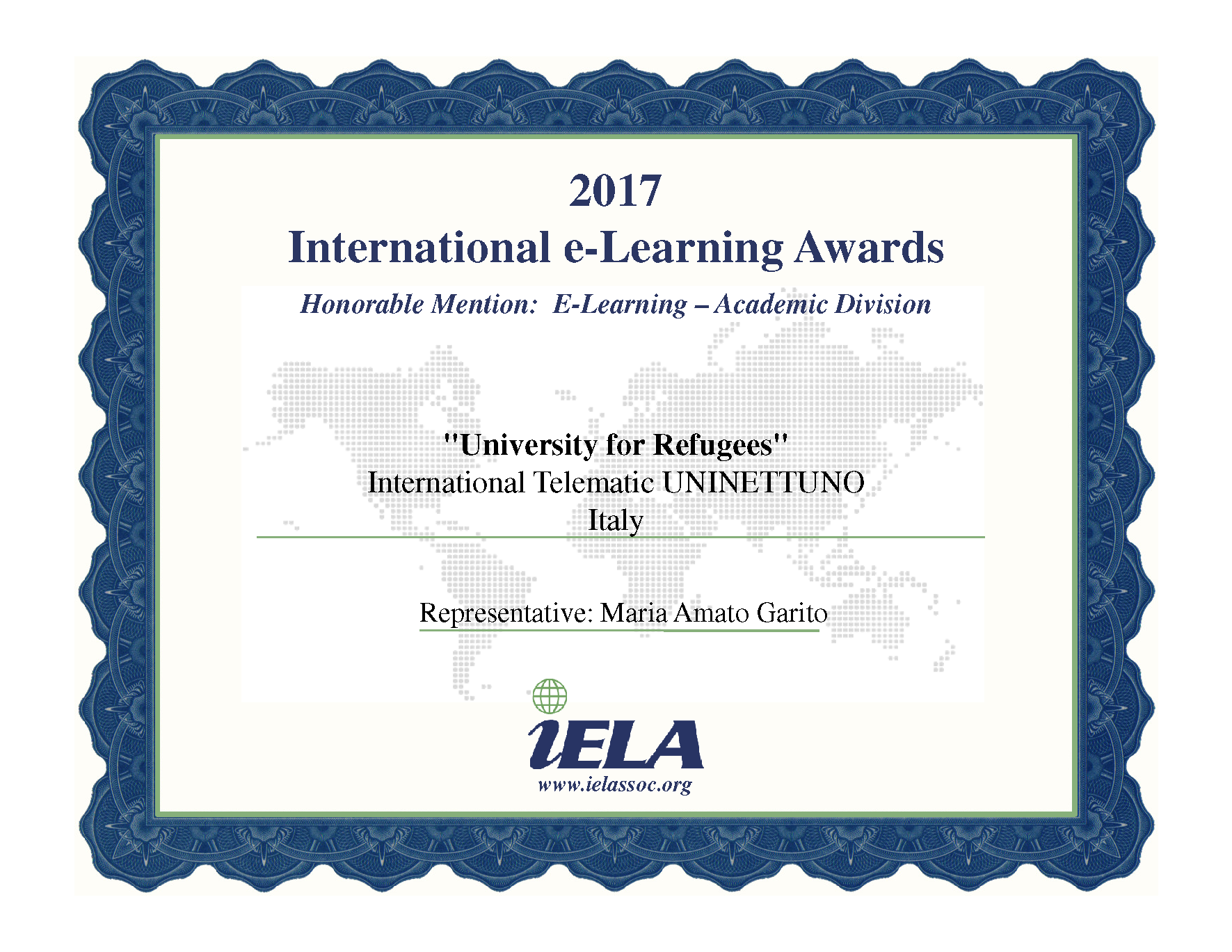 L'Università Telematica Internazionale UNINETTUNO riceve la menzione d’onore all’International E-Learning Award 2017 (Academic Division) per il suo portale University for Refugees, un esempio concreto di come l’e-learning  possa contribuire a ridurre le diseguaglianze e a migliorare a livello globale il livello di istruzione.